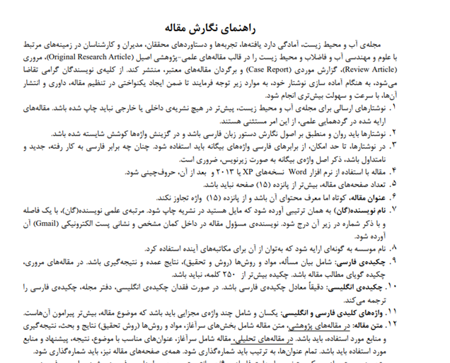 راهنمای نگارش مقاله در مجلهی آب و محیط زیست